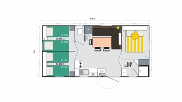 A rentabilidade não exclui espaço, pelo contrário! O layout das 3 salas do modelo Super Titania 3. Foi pensado para um alojamento ideal com uma relação capacidade / preço imbatível!