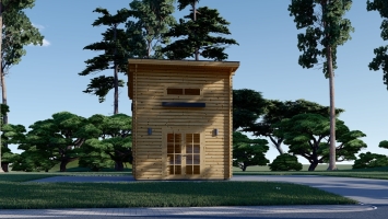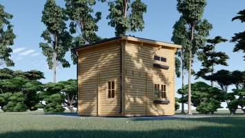 A casa modelo AVIGNON F é uma estrutura de dois andares permite separar confortavelmente as áreas de estar e dormir. Um loft espaçoso oferece uma área tranquila e imperturbável para descansar à noite. Inúmeras janelas permitem a entrada de muita luz natural e também complementam o design geral da casa. Uma casa de banho independente que garante o seu conforto residencial. A nossa casa de madeira AVIGNON é um dos poucos modelos mais compactos da nossa gama. Possui uma disposição de dois andares com um loft, o que permitirá usar com eficiência todo o espaço e separar confortavelmente as áreas de lazer e descanso. Caso a isole, esta charmosa casa também pode servir como uma residência individual ou um lugar elegante onde um casal pode viver de forma ecológica em qualquer mês do ano.