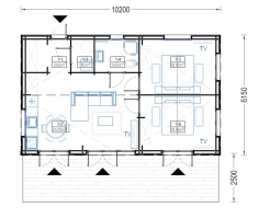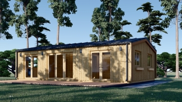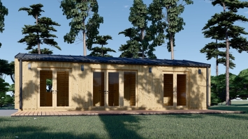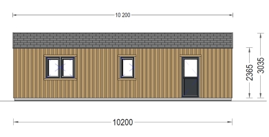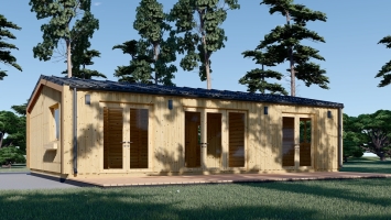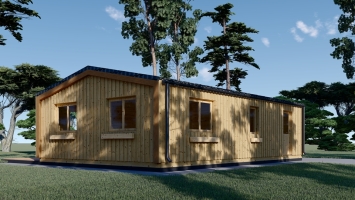 A casa modelo SELENE contém 2 quartos confortáveis, ideais para hóspedes e para manter a privacidade. Uma sala de estar com cozinha aberta, o lugar perfeito para reuniões de família e jantares de fim de semana. Grandes portas de vidro e janelas menores, permitindo a entrada de luz natural em todo o interior. O seu elegante revestimento externo vertical dá um toque contemporâneo. Telhado de duas águas que combina perfeitamente elementos de design tradicional e moderno. Terraço de 25 m² (opcional) onde pode desfrutar de manhãs frescas ou tardes quentes. A nossa charmosa casa de madeira SELENE oferece muito espaço interno convenientemente distribuído: dois quartos confortáveis, uma sala de estar espaçosa com área de cozinha aberta, casa de banho e lavanderia. A disposição eficiente da casa torna-a um modelo muito versátil e adequado para vários fins. Desfrute de um espaço confortável repleto de luz natural que atenderá facilmente às necessidades da sua família.