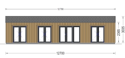 A casa modelo NICOLE tem 3 quartos confortáveis que podem acomodar até seis pessoas sob o mesmo teto. Grandes portas de vidro na frente do edifício que lhe permitirão desfrutar de uma grande quantidade de luz natural. Uma sala iluminada com cozinha aberta, para que toda a família possa desfrutar de bons momentos em companhia. O seu revestimento externo vertical e telhado de duas águas dão um toque de arquitetura contemporânea. Um espaçoso terraço de 30 m² (opcional) onde pode colocar algumas espreguiçadeiras e móveis ao ar livre para relaxar e descontrair após um longo dia. A nossa luminosa e espaçosa casa de madeira NICOLE de 78 m² pode ser exatamente o que procura e muito mais. Devido ao seu tamanho e disposição interna correta, a nossa casa de madeira NICOLE pode servir a muitos propósitos diferentes.