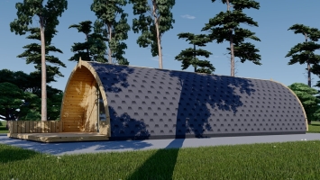 A casa modelo BRETA pode servir a muitos propósitos: pode se tornar um quarto de hóspedes exclusivo, uma cápsula de acampamento no seu quintal ou até mesmo ser parte de um negócio de glamping de sucesso. A forma arredondada da casa oferece uma aparência original e marcante. Possibilidade de escolher entre várias opções de tamanho para encontrar a combinação perfeita. Um terraço compacto: o lugar perfeito para passar momentos tranquilos numa espreguiçadeira. Uma área comum com 19m² de espaço para cozinha e sala, e um quarto separado para uma boa noite de sono. Possui casa de banho independente para maior conforto. Esta estrutura única em madeira de coníferas natural irá inspirá-lo a passar mais tempo com a sua família relaxando na sua espaçosa sala de estar ou no terraço exterior. Obviamente, montar o seu próprio negócio de glamping é outra ótima opção, considerando o tamanho e a disposição confortáveis desse modelo. Seja qual for o caminho que escolher, a BRETA irá servi-lo por anos e o seu quintal brilhará com uma nova luz.