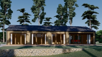 A casa modelo ELIZA tem uma disposição cuidadosa que inclui uma cozinha aberta para cozinhar e conversar com os seus entes queridos. Três quartos e três casas de banho para que cada membro da família tenha o seu próprio espaço privado. Uma divisão extra ao lado da cozinha, ideal para armazenamento. Inúmeras janelas que permitem iluminação natural e belas vistas. Um terraço de 49 m² disponível como elemento extra. A nossa casa de madeira ELIZA dá a liberdade de decorar e utilizar os quartos multifuncionais como desejar, seja para as necessidades da sua família, para receber convidados ou para realizar os seus hobbies. Se decidir adicionar um terraço aberto, poderá apreciá-lo ainda mais durante as longas noites de verão ou talvez prefira isolamento extra para os invernos rigorosos e frios.