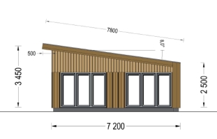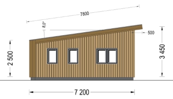 A casa modelo ZOE tem uma magnífica disposição interior: 3 quartos amplos, uma ampla sala de estar de 35 m² e três casas de banho separados que garantem o máximo conforto residencial. Revestimento vertical contemporâneo, proporcionando um visual moderno e requintado. Telhado inclinado contemporâneo e elegante que chama a atenção instantaneamente. Inúmeras janelas que oferecem espaços internos bem iluminados e acolhedores. Feito de madeira de coníferas natural de alta qualidade, garantindo um ambiente de vida saudável. Possibilidade de ampliação da casa com amplo terraço frontal e lateral (opcional). A nossa casa de madeira ZOE, com forma assimétrica elegante e design arquitetónico contemporâneo, pode se tornar uma luxuosa residência familiar ou casa de férias. Os 110 m² de superfície interior, aliados a um enorme terraço, fazem deste modelo uma opção excecional para casas maiores que pretendem garantir privacidade e conforto a cada membro da família. Temos um modelo semelhante de casa de madeira com telhado de duas águas, caso queira explorar outra opção com as mesmas vantagens funcionais.