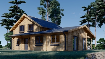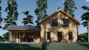 A casa modelo DARLA contém 5 quartos que oferecem conforto para si e para os seus amigos e espaços comuns e separados. Um armazém para guardar os seus eletrodomésticos e outros itens. Uma sala de estar e cozinha em plano aberto, criando mais espaço para ideias interessantes de design de interiores. Uma entrada coberta para a sua segurança e conforto. Um terraço que aumenta a sua área de estar em 30 m². A DARLA é uma casa de madeira espaçosa que pode acomodar facilmente a sua família e amigos para estadias temporárias e permanentes. Oferece um amplo espaço para que todos possam partilhar refeições, aproveitar a sala de estar juntos e ao final do dia todos podem dormir tranquilos em quartos separados. Vai adorar o design elegante desta casa de estilo clássico e o seu terraço, que lhe dará ainda mais ideias para desfrutar do seu próprio oásis. Se procura uma casa que o ajude a relaxar e a sentir-se confortável em organizar refeições em companhia, a DARLA é a nossa melhor recomendação!
