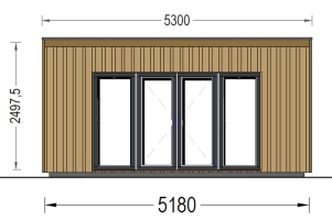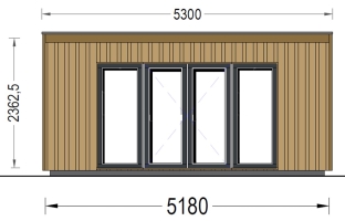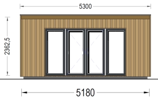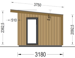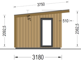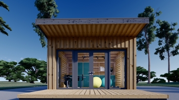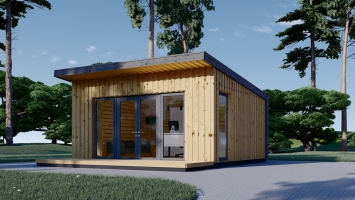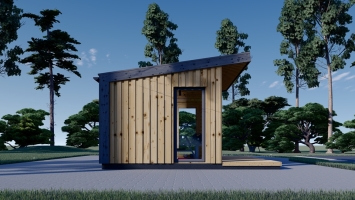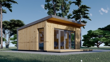 A casa modelo EVELIN tem o telhado plano, as amplas janelas e portas do chão ao teto e o revestimento contemporâneo combinam-se de forma moderna. As grandes janelas e portas que cobrem a frente e as laterais da estrutura preencherão o espaço interior com luz natural. Uma estrutura compacta e esteticamente agradável que não atrapalhará o seu pátio. Espaço aberto para projetar a área interna como desejar. Possibilidade de adicionar um magnífico terraço (opcional) e tornar a sua estrutura de madeira do seu jardim verdadeiramente excecional. Se está a pensar em construir um jardim ultimamente, a nossa charmosa casa de madeira EVELIN é uma solução perfeita que pode servir para muitos propósitos. Se deseja um espaço de trabalho remoto para uso diário e durante todo o ano, um estúdio de arte ou hobby, ou até mesmo uma academia independente, temos uma versão deste modelo encantador disponível para si! Várias opções de tamanho e isolamento térmico permitirão que você escolha o que considera perfeito para as suas necessidades.