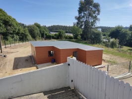 O telhado é constituido por telhas sandwich com uma capacidade de isolamento na ordem dos 70% a 80%. A qualidade das nossas telhas sandwich é bastante acima da média do geralmente utilizado no mercado Português.