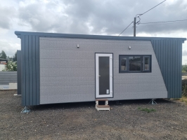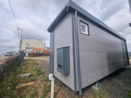 Descubra esta casa modular moderna e funcional, com medidas de 7,55m x 2,60m, projetada para oferecer conforto e praticidade num espaço otimizado.
