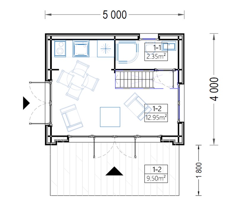 A casa modelo SARA contém um sótão de 15 m² para criar um espaço de descanso confortável e separar as zonas de estar e de dormir. Um terraço encantador de 10 m² que lhe permite desfrutar do ar fresco e passar mais tempo ao ar livre. Uma bela combinação entre o clássico e o moderno garante a exclusividade arquitetónica. Uma sala de estar cheia de luz natural para criar uma zona de repouso confortável. Uma casa de banho independente que garante o seu conforto residencial. Se procura um local de residência acolhedor, simples e ecológico para uma pessoa ou um casal, ou um espaço minimalista para passar os seus fins de semana. A sua disposição permite-lhe separar completamente a zona de estar da zona de descanso e aproveitar ao máximo a sua residência compacta. O seu terraço encantador expande ainda mais o espaço interior, permitindo-lhe relaxar confortavelmente no exterior, sempre que lhe apetecer.
