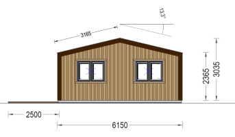 A casa modelo SELENE contém 2 quartos confortáveis, ideais para hóspedes e para manter a privacidade. Uma sala de estar com cozinha aberta, o lugar perfeito para reuniões de família e jantares de fim de semana. Grandes portas de vidro e janelas menores, permitindo a entrada de luz natural em todo o interior. O seu elegante revestimento externo vertical dá um toque contemporâneo. Telhado de duas águas que combina perfeitamente elementos de design tradicional e moderno. Terraço de 25 m² (opcional) onde pode desfrutar de manhãs frescas ou tardes quentes. A nossa charmosa casa de madeira SELENE oferece muito espaço interno convenientemente distribuído: dois quartos confortáveis, uma sala de estar espaçosa com área de cozinha aberta, casa de banho e lavanderia. A disposição eficiente da casa torna-a um modelo muito versátil e adequado para vários fins. Desfrute de um espaço confortável repleto de luz natural que atenderá facilmente às necessidades da sua família.