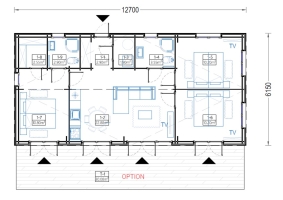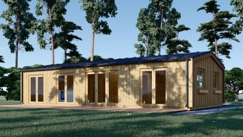 A casa modelo NICOLE tem 3 quartos confortáveis que podem acomodar até seis pessoas sob o mesmo teto. Grandes portas de vidro na frente do edifício que lhe permitirão desfrutar de uma grande quantidade de luz natural. Uma sala iluminada com cozinha aberta, para que toda a família possa desfrutar de bons momentos em companhia. O seu revestimento externo vertical e telhado de duas águas dão um toque de arquitetura contemporânea. Um espaçoso terraço de 30 m² (opcional) onde pode colocar algumas espreguiçadeiras e móveis ao ar livre para relaxar e descontrair após um longo dia. A nossa luminosa e espaçosa casa de madeira NICOLE de 78 m² pode ser exatamente o que procura e muito mais. Devido ao seu tamanho e disposição interna correta, a nossa casa de madeira NICOLE pode servir a muitos propósitos diferentes.