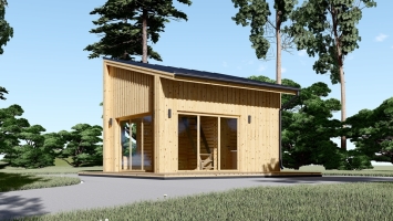 A casa modelo SOPHIA tem um loft espaçoso de 15 m² que proporciona um espaço separado e tranquilo para descansar confortavelmente. Janelas e portas de vidro grandes e PVC que garantem um espaço interior luminoso e acolhedor. Um terraço charmoso de 15 m² (item extra e não incluído no preço) que permitirá que passe mais tempo ao ar livre, seja a apanhar sol, a apreciar a vista ou a observar as estrelas. O revestimento moderno dá instantaneamente mais estilo e personalidade ao design geral. A nossa casa de madeira SOPHIA é um verdadeiro deleite para quem valoriza um design excecional e quer rodear-se de soluções arquitetónicas mais contemporâneas. Se procura um lugar compacto, elegante, ecológico e mais acessível para estadias temporárias para passar um tempo sozinho ou com o seu parceiro, este modelo pode ser a opção ideal.