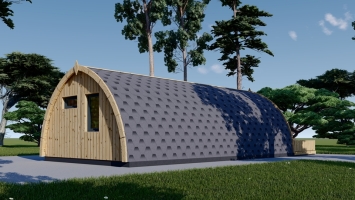 A casa modelo BRETA pode servir a muitos propósitos: pode se tornar um quarto de hóspedes exclusivo, uma cápsula de acampamento no seu quintal ou até mesmo ser parte de um negócio de glamping de sucesso. A forma arredondada da casa oferece uma aparência original e marcante. Possibilidade de escolher entre várias opções de tamanho para encontrar a combinação perfeita. Um terraço compacto: o lugar perfeito para passar momentos tranquilos numa espreguiçadeira. Uma área comum com 19m² de espaço para cozinha e sala, e um quarto separado para uma boa noite de sono. Possui casa de banho independente para maior conforto. Esta estrutura única em madeira de coníferas natural irá inspirá-lo a passar mais tempo com a sua família relaxando na sua espaçosa sala de estar ou no terraço exterior. Obviamente, montar o seu próprio negócio de glamping é outra ótima opção, considerando o tamanho e a disposição confortáveis desse modelo. Seja qual for o caminho que escolher, a BRETA irá servi-lo por anos e o seu quintal brilhará com uma nova luz.