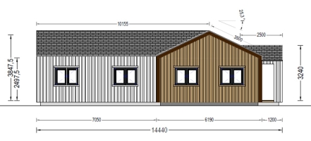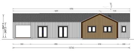A casa modelo TESSA tem um grande alpendre com acesso direto à sala de estar (o terraço pode ser ampliado com uma área lateral extra, um recurso opcional que pode ser implementado por um custo extra). Uma sala de estar espaçosa de 38 m² ideal para instalar uma grande cozinha, sala de jantar e áreas de descanso. Divisões para diversas finalidades. Alpendre elegante em frente à entrada: um belo e prático detalhe arquitetónico. Duas casas de banho independentes. Aproveite a vida ao máximo com a mais recente adição à nossa coleção TESSA, uma magnífica casa de madeira com amplo espaço interior, revestimento contemporâneo e uma forma muito elegante. Esta magnífica estrutura tem potencial de se tornar o espaço perfeito como residência primária ou secundária (dependendo se você escolher uma versão isolada ou normal). O equilíbrio ideal entre o espaço interior e exterior permitirá que experiencie o máximo de relaxamento e conforto..