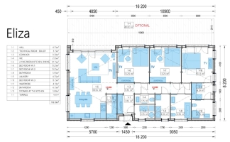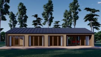 A casa modelo ELIZA tem uma disposição cuidadosa que inclui uma cozinha aberta para cozinhar e conversar com os seus entes queridos. Três quartos e três casas de banho para que cada membro da família tenha o seu próprio espaço privado. Uma divisão extra ao lado da cozinha, ideal para armazenamento. Inúmeras janelas que permitem iluminação natural e belas vistas. Um terraço de 49 m² disponível como elemento extra. A nossa casa de madeira ELIZA dá a liberdade de decorar e utilizar os quartos multifuncionais como desejar, seja para as necessidades da sua família, para receber convidados ou para realizar os seus hobbies. Se decidir adicionar um terraço aberto, poderá apreciá-lo ainda mais durante as longas noites de verão ou talvez prefira isolamento extra para os invernos rigorosos e frios.