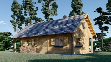 A casa modelo AURA tem um grande terraço coberto (com 30 m²) na parte frontal e lateral da casa que oferece o local perfeito para desfrutar de momentos relaxantes ao ar livre. Uma varanda elegante: um ótimo lugar para relaxar um pouco e aproveitar cada segundo. Uma sala principal espaçosa que permite criar o espaço ideal para descansar com toda a sua família. 2 quartos amplos no segundo andar que garantem a máxima privacidade para todos os moradores. Uma sala compacta separada no primeiro andar, ideal como escritório em casa ou quarto de hóspedes. Casa de banho grande que oferece o melhor conforto residencial. A nossa linda casa de madeira AURA pode ser o que procura. Oferece uma combinação perfeita de espaço interior e exterior e garante o máximo conforto e uma experiência de vida relaxante. Esta casa pode ser um verdadeiro sonho tornado realidade para quem admira soluções arquitetónicas em madeira e um estilo de vida mais natural.