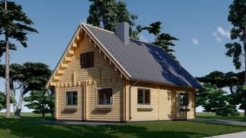 A casa modelo DORIS tem o telhado de duas águas e a simetria da DORIS realçam a beleza da arquitetura tradicional. Inúmeras janelas que atraem luz natural e ar fresco. Um alpendre que também pode ser usado como local de descanso e que pode decorar como desejar. O primeiro andar oferece um espaço amplo para que se possa movimentar livremente: a cozinha aberta é um elemento arquitetónico moderno e prático. O loft possui dois quartos amplos com espaço para escrivaninha, armário e muito mais! A DORIS é uma casa de madeira que vai estimular a sua criatividade e ajudar a realizar o seu sonho de ter uma linda casa de madeira para toda a sua família. Explore o design exterior elegante e veja o interior: a disposição confortável pode inspirá-lo para começar a visualizar a sua vida mais perto da natureza, sob o clássico telhado de duas águas. A DORIS oferece uma garantia de 10 anos, embora dure muito mais se a mantiver adequadamente. Prepare-se para viver de uma forma nova e muito mais feliz com a sua nova (e não tão humilde) moradia!.