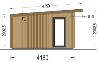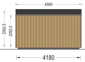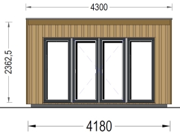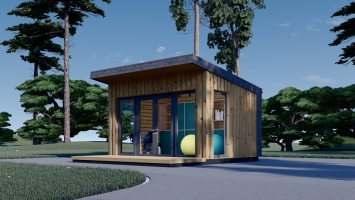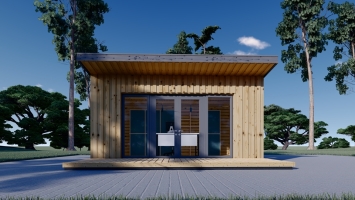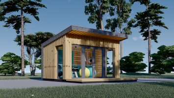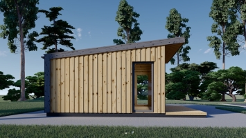 A casa modelo EVELIN tem o telhado plano, as amplas janelas e portas do chão ao teto e o revestimento contemporâneo combinam-se de forma moderna. As grandes janelas e portas que cobrem a frente e as laterais da estrutura preencherão o espaço interior com luz natural. Uma estrutura compacta e esteticamente agradável que não atrapalhará o seu pátio. Espaço aberto para projetar a área interna como desejar. Possibilidade de adicionar um magnífico terraço (opcional) e tornar a sua estrutura de madeira do seu jardim verdadeiramente excecional. Se está a pensar em construir um jardim ultimamente, a nossa charmosa casa de madeira EVELIN é uma solução perfeita que pode servir para muitos propósitos. Se deseja um espaço de trabalho remoto para uso diário e durante todo o ano, um estúdio de arte ou hobby, ou até mesmo uma academia independente, temos uma versão deste modelo encantador disponível para si! Várias opções de tamanho e isolamento térmico permitirão que você escolha o que considera perfeito para as suas necessidades.